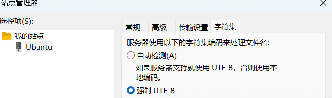 连接成功,如果Ubuntu端出现乱码,则是因为字符格式不一致选择强制修改为UTF-8即可。