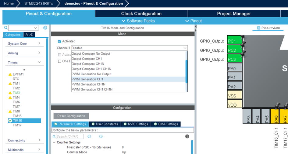 HAL_TIM_PWM_Start(&htim17, TIM_CHANNEL_1);