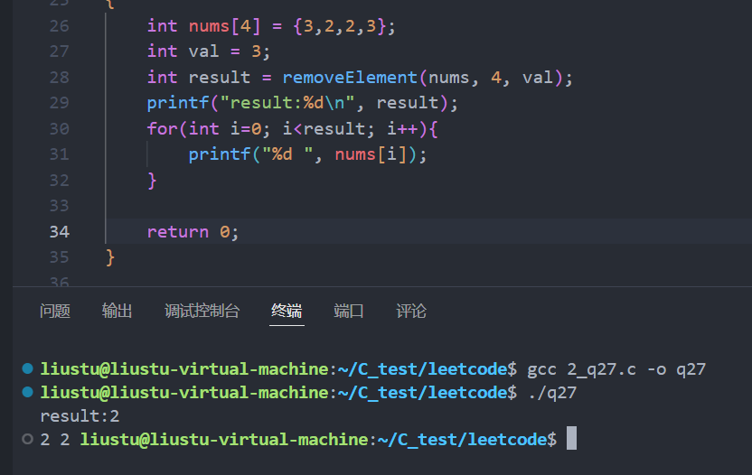 int result = removeElement(nums, 4, val);