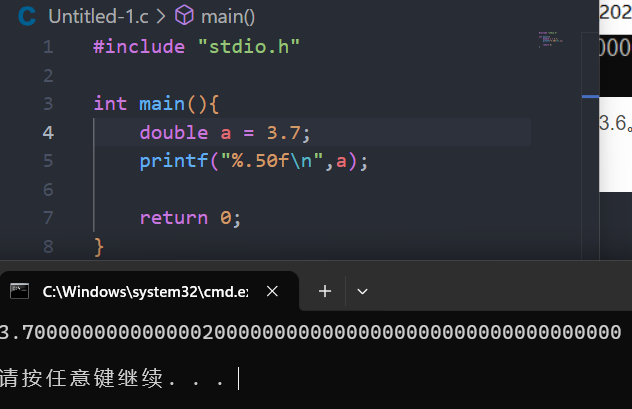 由此可见,程序输出的结果并不是其被赋予的值。即说明了浮点数存在一定的误差。而这个误差与本身的精度有关