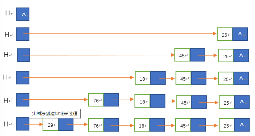 LinkCreateH(stu); /* 用头插法插入一个接单 */