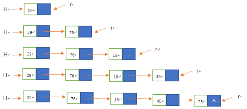 r->next = p; //将结点插入到表头L-->|1|-->|2|-->NULL