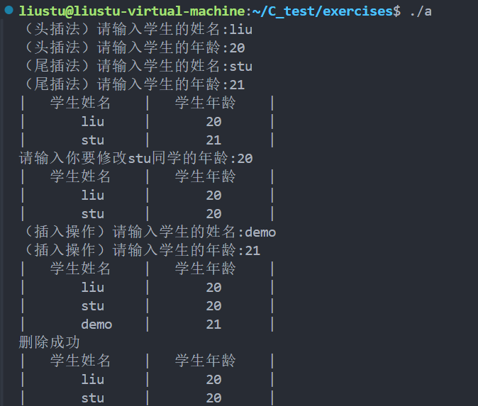 LinkList_Delete(stu, "demo"); /* 删除某个节点 */