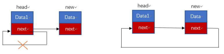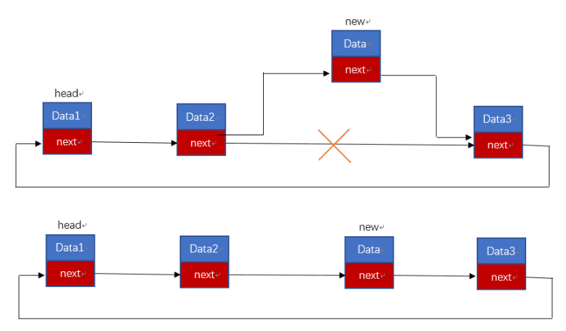循环链表需要进行结点的特判,找到尾节点的位置,由于尾节点的next指针是指向头结点的,所以不能使用链表本身是否为空(NULL)的方法进行简单的循环判断,我们需要通过判断结点的next指针是否等于头结点的方式进行是否完成循环的判断
