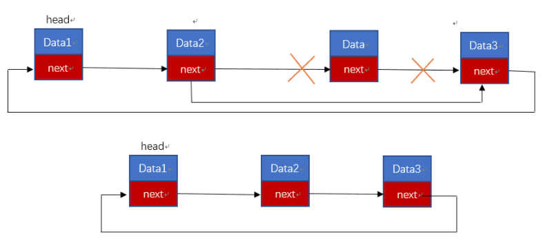 //循环链表当找到最后一个元素的时候会自动指向头元素,这是我们不想让他发生的