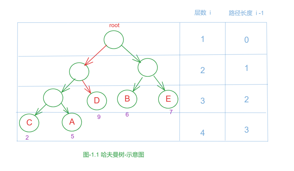 结点的带权路径长度:指的是从根结点到该结点之间的路径长度与该结点的权的乘积