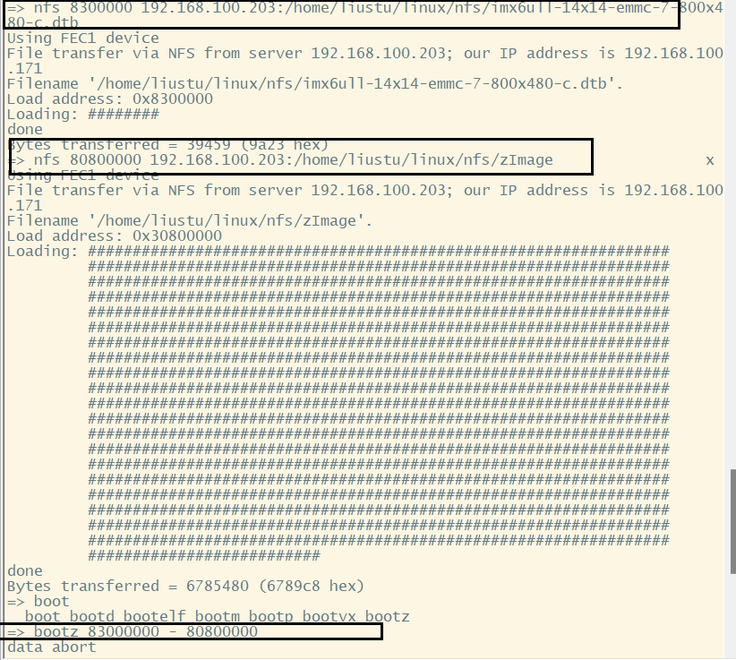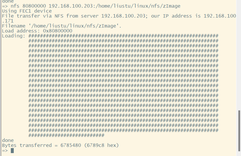 nfs 80800000 192.168.100.203:/home/liustu/linux/nfs/zImage