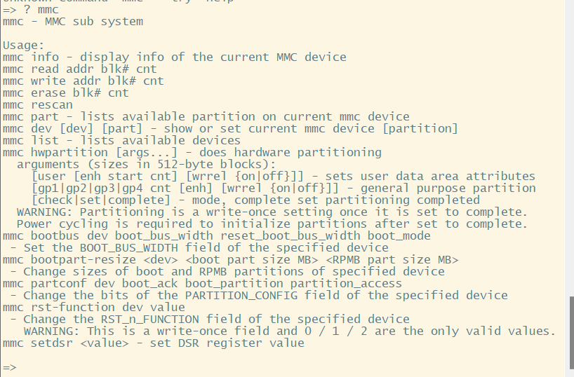 uboot支持EMMC和SD卡上,因此也要提供EMMC和SD卡的操作命令。一般认为EMMC和SD卡是一个东西,所以没有特殊说明。