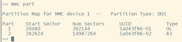 可以看见我这个EMMC一共两个分区,以及其他的起始扇区,和长度。