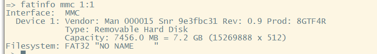 fatinfo 命令用于查询指定 MMC 设备分区的文件系统信息,格式如下: