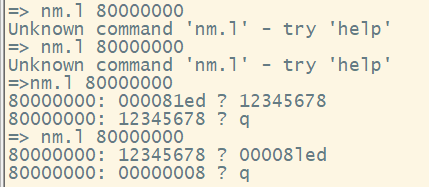 nm命令用于修改指定地址的内存值: nm[.b,.w,.l] address