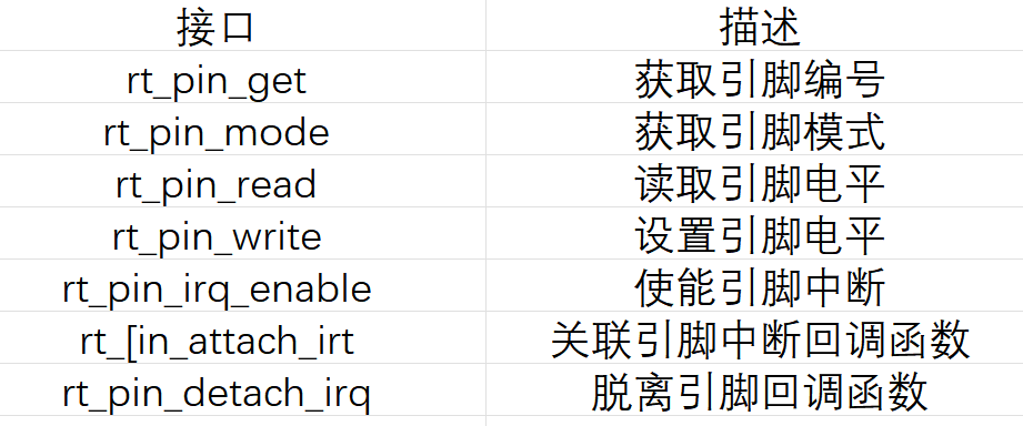 RT-thread通过PIN设备对芯片的GPIO引脚进行管理,我们可以通过rtt它提供的一系列PIN设备管理接口来操作GPIO