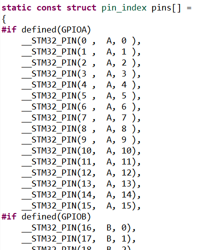 在rtt中的引脚编号和芯片上的引脚号并不是一个概念,所以在操作PIN设备前,我们需要使用引脚编号来指定对哪个引脚进行操作。通常有3种方式获得引脚编号:调用API、宏定义、查看PIN驱动文件。