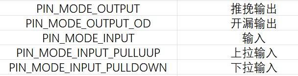 设置引脚输出/输出模式,共有五种模式:推挽输出、开漏输出、输入、上拉输入、下拉输入