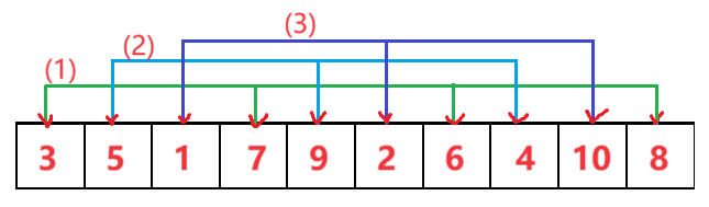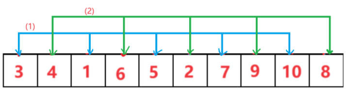 选取一个基准点,然后分别扫描数组的两端,设有两个“指针”指向起始和结束位置