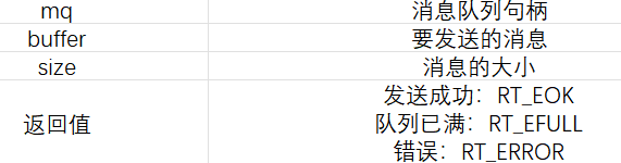 rt_err_t rt_mq_send(rt_mq_t mq, const void *buffer, rt_size_t size);