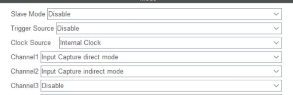 我们使用两个通道,分别为输入捕获直接模式、输入捕获间接模式(因为要捕获占空比)
