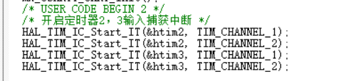 判断定时器如果为TIM2(PA15为TIM2的通道引脚);当捕获到上升沿的时候(定时器响应的通道为通道1)时,分别读取通道1和通道2的捕获值;读取完后,并将定时器计数器清零,防止溢出;
