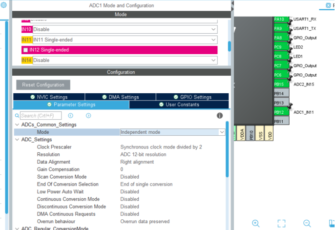PB15、PB12分别对应ADC2_IN15、ADC1_IN11
