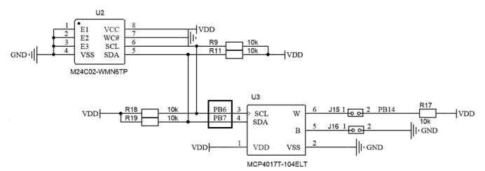 原理图中有一个AT24C02,为EEPROM使用的通信协议为IIC(PB6,PB7)