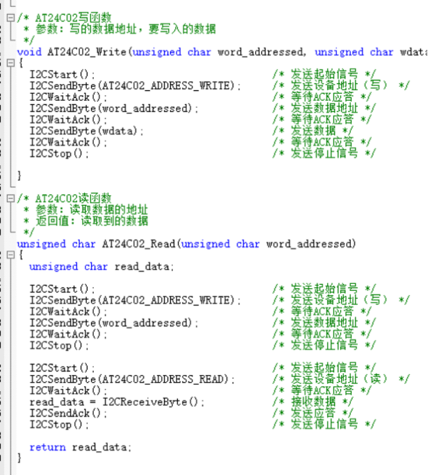 在.c下创建AT24C02的读取和写入的函数,并在.h中声明