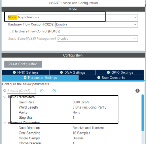 使能USART1,波特率设置为9600,8位长度,无校验位,1停止位(具体根据题目要求来)