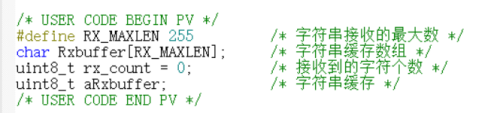定义全局变量,存放串口返回值以及字符数组的最大长度,接收字符数、字符缓存位