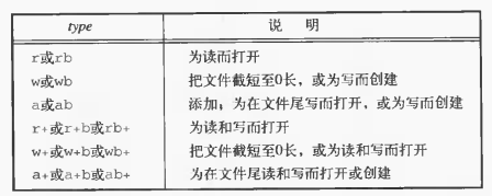 使用字符b作为type的一部分,这使得标准IO系统可以区分文本文件和二进制文件。因为UNIX没有对这两类文件做区分。