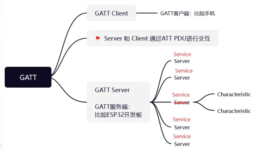 GATT 是蓝牙低功耗(BLE)中用于规范设备间服务(Service)、特征(Characteristic)等数据结构,并实现数据读写、通知等交互的核心协议。