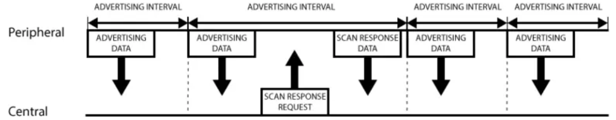 外围设备会设定一个广播间隔,每个广播间隔中,它会重新发送自己的广播数据。广播间隔越长,越省电,同时也不太饿哦能够以扫描到。
