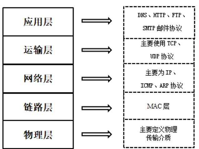 TCP/IP是众多网络协议的集合,包含ARP、IP、ICMP、UDP、TCP、DNS、DHCP、FTP、MQTT等,这些协议按功能划分为5层,从下到上分别是:物理层、数据链路层、网络层、传输层、应用层(MQTT和HTTP均属于应用层)。
