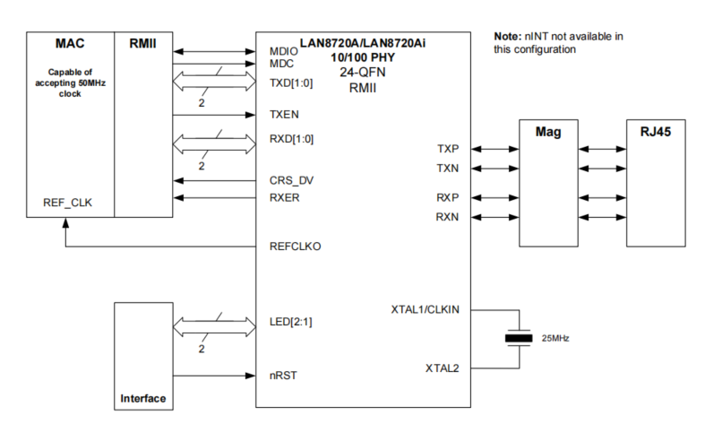 RMII 接口是 MAC 和 PHY 之间的实例化对象。这有助于将 MAC 的 MII 转换为 RMII。