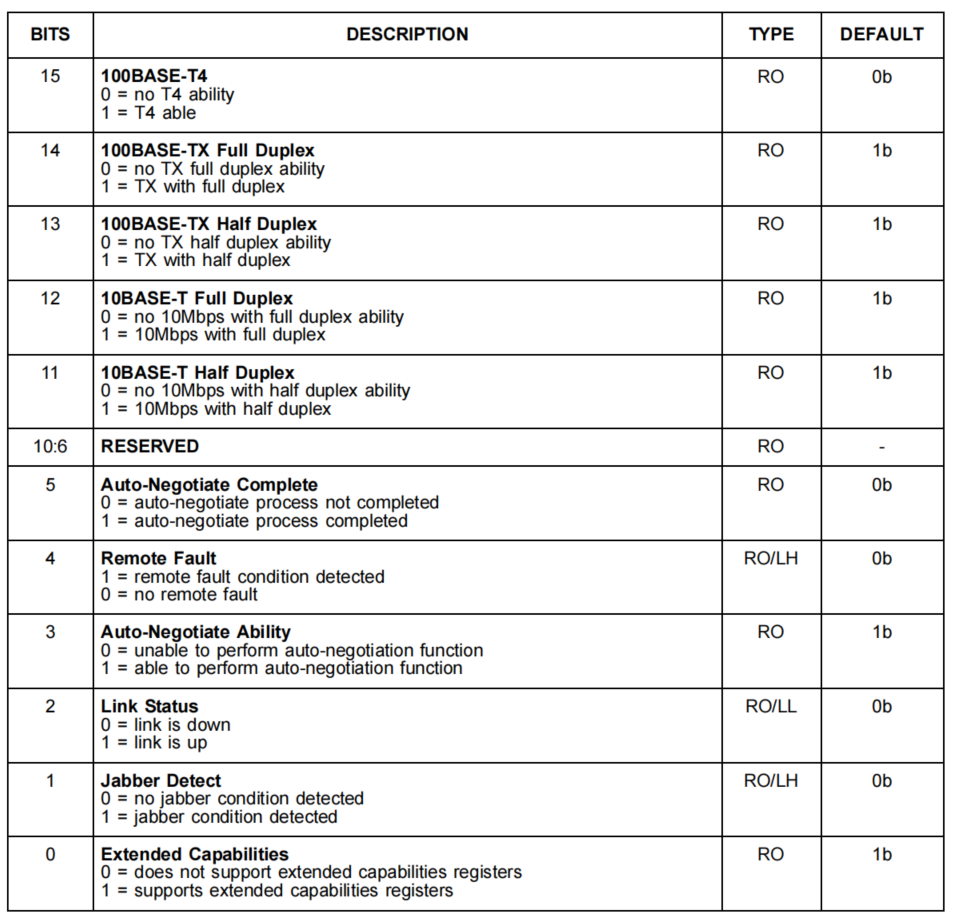 PHY芯片是必须要规范化的,是一定遵守IEEE802.3规范的,所以所有的PHY芯片型号的前0-15个寄存器属性都是规定好的,后面的寄存器才是PHY厂商自定义的。